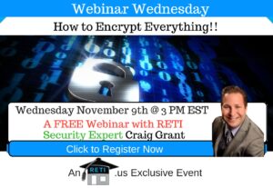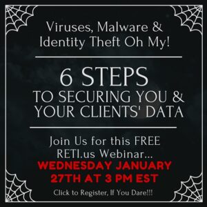 “6 Steps to Protecting You & Your Clients’ Data” The Code of Ethics requires you to collect and store all documents, communications, etc. & yet most REALTORS have never had any Data Security Training. This FREE RETI webinar will help solve that and more! Instructor: Craig Grant Click to Watch this Webinar on Replay