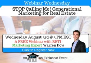 Setting Up a New Real Estate Brokerage & Being Profitable from Day 1 Even if you hope to open your own office 1 day, you need to attend this awesome webinar by RETI’s Warren Dow. Setting a real estate company is tough, doing it right & being profitable from day 1 is near impossible. Learn the tricks to make it happen! Instructor: Warren Dow Wednesday, January 18th @ 3 PM EST Click to Watch this Webinar on Replay
