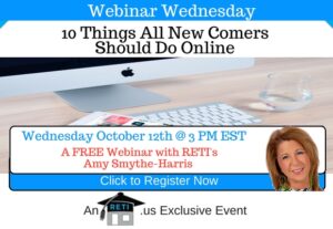 “10 Things All Newbies Should Do Online” The Internet is a huge expansive world and can be intimidating not knowing what to do, where to start, etc. especially for someone newer to real estate. In this session Amy will give you 10 great tips you need to know if you’re going to venture online. Instructor: Amy Smythe-Harris Wednesday October 12th @ 3 PM EST Click to Watch this Webinar on Replay