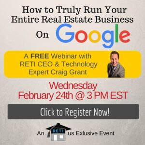 “Run Your Entire Real Estate Business on Google” Google provides so many tools that you could really run just about every aspect of a real estate business for free or for just a few dollars a month. In this session, Craig will provide you a tour of the Google system and show you how it all ties together to allow you to truly run your whole business on it! Instructor: Craig Grant Click to Watch this Webinar on Replay