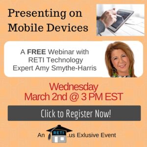 “Presenting on Mobile Devices” Ever wanted to do a presentation or go over reports with your clients on your mobile devices, but didn’t know how? Attend this session and you will! Instructor: Amy Smythe-Harris Wednesday, March 2nd @ 3 PM EST Click to Watch this Webinar on Replay