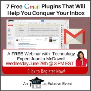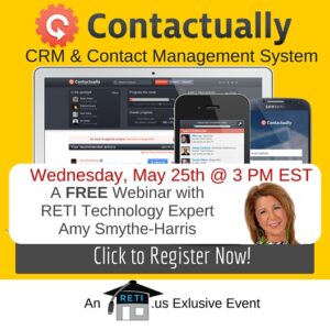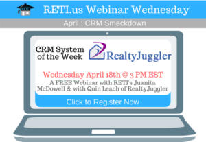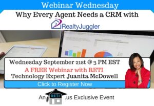 “Why Every Agent Needs a CRM with Quin Leach of RealtyJuggler” A CRM System is vital to today’s REALTOR. In this session, RETI’s Juanita McDowell will discuss the importance of CRM’s and how they can help any REALTOR get to the next level. Instructor: Juanita McDowell Wednesday September 21st @ 3 PM EST Click to Watch this Webinar on Replay