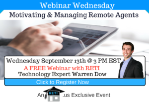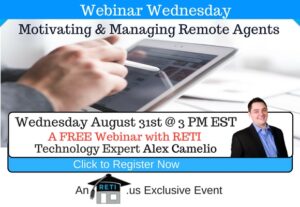 “Motivating & Managing Remote Real Estate Agents” Most real estate companies strive to allow their team to work remotely. In this session, Alex will show you how to keep them engaged & motivated! Instructor: Alex Camelio Wednesday August 31st @ 3 PM EST Click to Watch this Webinar on Replay