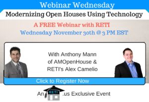 “Using Technology to Modernize Your Open Houses” Open Houses have basically been the same thing for ages. Well not anymore! Anthony Mann, the CEO of AM Open House will share with Alex some creative and brilliant ideas on how you can use technology to modernize and optimize your opens! Instructor: Anthony Mann of AM Open House & Alex Camelio of RETI Wednesday, November 30th @ 3 PM EST Click to Watch this Webinar on Replay