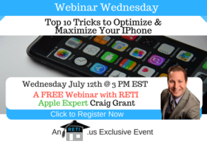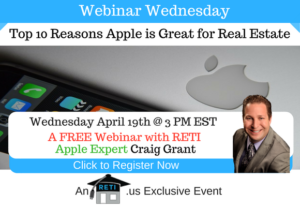 Top 10 Reasons Apple is Great for Real Estate In addition to having great devices, Apple also has some amazing software and tools that most people don’t know about. In this session, Craig will help you discover several tricks and tips to get more done with Apple Instructor: Craig Grant Wednesday, April 19th @ 3 PM EST Click here to Watch this Webinar on Replay