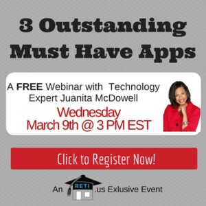 “3 Outstanding Must Have Apps” So many apps, it is easy to get lost. In this webinar, App expert Juanita McDowell will share a few of her favorites! Instructor: Juanita McDowell Wednesday, March 9th @ 3 PM EST Click to Watch this Webinar on Replay