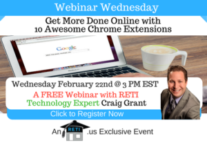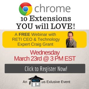 “10 Chrome Extensions You Will Love” Extensions are basically Apps you can install in your web browser and they make your online experience so much more efficient & powerful. In this session, RETI tech expert Craig Grant will share some of his favorite Chrome Extensions that will take your online experience to the next level! Instructor: Craig Grant Wednesday, March 23rd @ 3 PM EST Click to Watch this Webinar on Replay