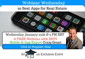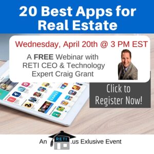 “20 Best Apps for Real Estate” RETI CEO and app lover Craig Grant will demo the 20 best apps for real estate to truly make your mobile life more powerful than it is right now. Instructor: Craig Grant Wednesday, April 20th @ 3 PM EST Click to Watch this Webinar on Replay