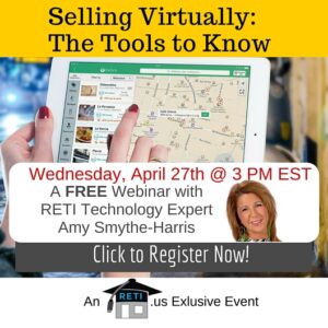 “Selling Virtually – The Tools You Need to Know” RETI Team Member and mobile/paperless agent expert Amy Smythe-Harris will teach you how to best sell virtually and the tools you need to know to pull it off. Instructor: Amy Smythe-Harris Wednesday, April 27th @ 3 PM EST Click to Watch this Webinar on Replay