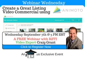 “Creating a Great Listing Video Commercial with Animoto” In this session RETI CEO Craig Grant will show you how to easily build a video commercial for a listing, condo building, neighborhood in seconds using Animoto! Instructor: Craig Grant Wednesday September 7th @ 3 PM EST Click to Watch this Webinar on Replay
