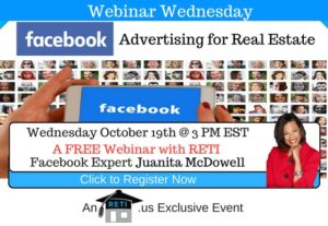 Facebook Advertising for Real Estate Facebook has built an amazing advertising system. Attend this session and you will learn from expert & RETI Team Member Juanita McDowell just how amazing it is and how you can leverage it in your real estate business. Instructor: Juanita McDowell Date: Wednesday, October 19th at 3 PM EST Click to Watch this Webinar on Replay