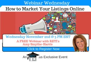 Creative Ways to Promote/Market Your Listings Online Known around the industry as one of the most creative and progressive REALTORS, RETI team member Amy Smythe-Harris will share some of her best practices that she uses to promote her listings! Instructor: Amy Smythe-Harris Wednesday, November 2nd @ 3 PM EST Click to Watch this Webinar on Replay