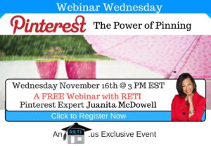 “Pinterest: The Power of Pinning” Pinterest has become one of the most popular social media networks as its all about imagery and no one does that better than Pinterest. In this session we will explore how to leverage Pinterest in the real estate world! Instructor: Juanita McDowell Click to Watch this Webinar on Replay