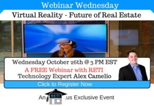Virtual Reality – Future of Real Estate Virtual & Augmented Reality used to be every geek’s dream, but it is quickly becoming a REALITY. In this session, RETI’s Alex Camelio will explore how it is already & will continue to disrupt the Real Estate Industry! Instructor: Alex Camelio Date: Wednesday October 26th @ 3 PM EST Click to Watch this Webinar on Replay