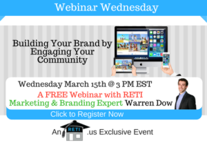 Building Your Brand by Engaging Your Community Building a brand is key to a successful real estate business, especially to generate listings with local property owners. in this session Warren will show you how to do it by engaging Your Local Community! Instructor: Warren Down Wednesday, March 15th @ 3 PM EST Click Here to Watch This Webinar on Replay