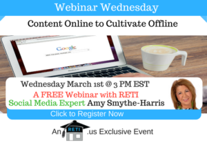 “Promoting Your Listings Online” Known around the industry as one of the most creative and progressive REALTORS, RETI team member Amy Smythe-Harris will share some of her best practices that she uses to promote her listings! Instructor: Amy Smythe-Harris Wednesday, March 30th @ 3 PM EST Click to Watch this Webinar on Replay