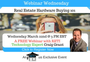 Real Estate Hardware Buying 101 How do you figure out the best computer, smartphone, tablet, cameras and more to buy for Your real estate business? Attend this session & learn how from RETI CEO and Tech Guru Craig Grant! Instructor: Craig Grant Wednesday, March 22nd @ 3 PM EST Click here to Watch this Webinar on Replay