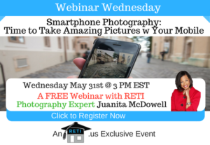Smartphone Photography: Time to Take Amazing Pictures w Your Mobile Devices You know the old saying, pictures sell properties. Well your smartphone can take amazing photos, if you know the right tools & tricks! In this session, Juanita will turn you into a Mobile Photography Pro! Date: Wednesday, May 31st, 2017 @ 3 PM EST Instructor: Juanita McDowell Click here to Watch this Webinar Now
