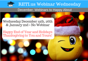 End of Year & Holiday Season – No Webinars December 19th to January 2nd.
